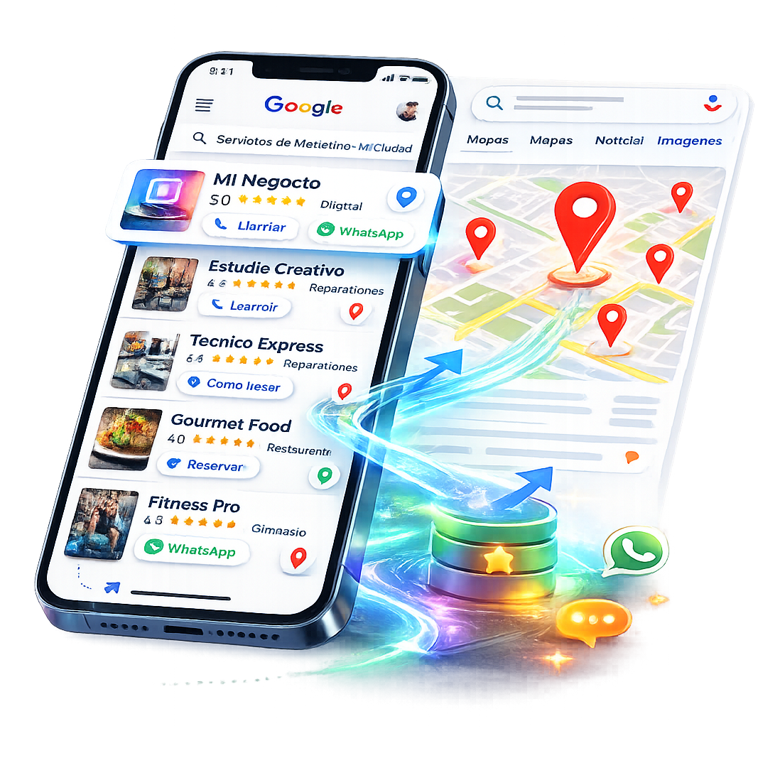 Nuestra Inteligencia Artificial organiza todo automáticamente para que tu negocio aparezca más rápido y frente a las personas que te buscan.